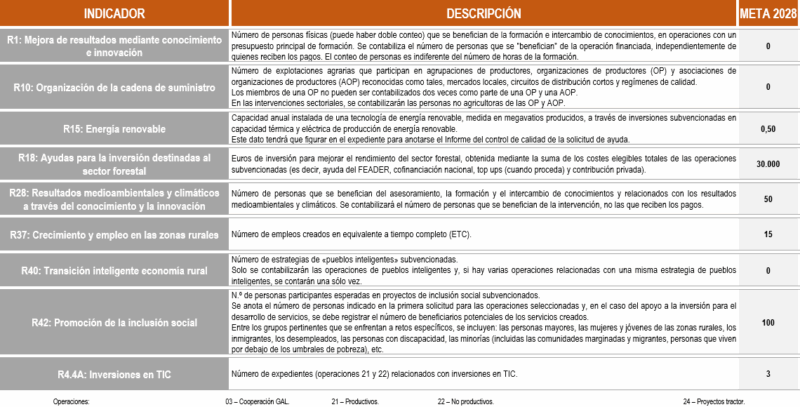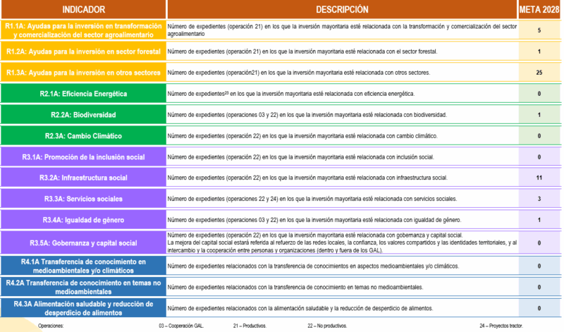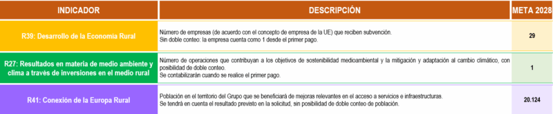 Con este fin, se especifican los indicadores que se utilizarán en la implantación de la EDLL 2023-2027 en los territorios de Sobrarbe y Ribagorza conforme al documento operativo aprobado.