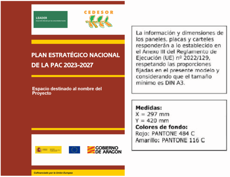 - En los proyectos donde se subvencionen soportes publicitarios (páginas web, folletos, carteles, paneles, etc.) habrá que acreditar el cumplimiento de la normativa publicitaria correspondiente, con referencia a la co-financiación del FEADER y del G.A., y con la autorización expresa previa de la Comisión de Comunicación Institucional del Gobierno de Aragón.